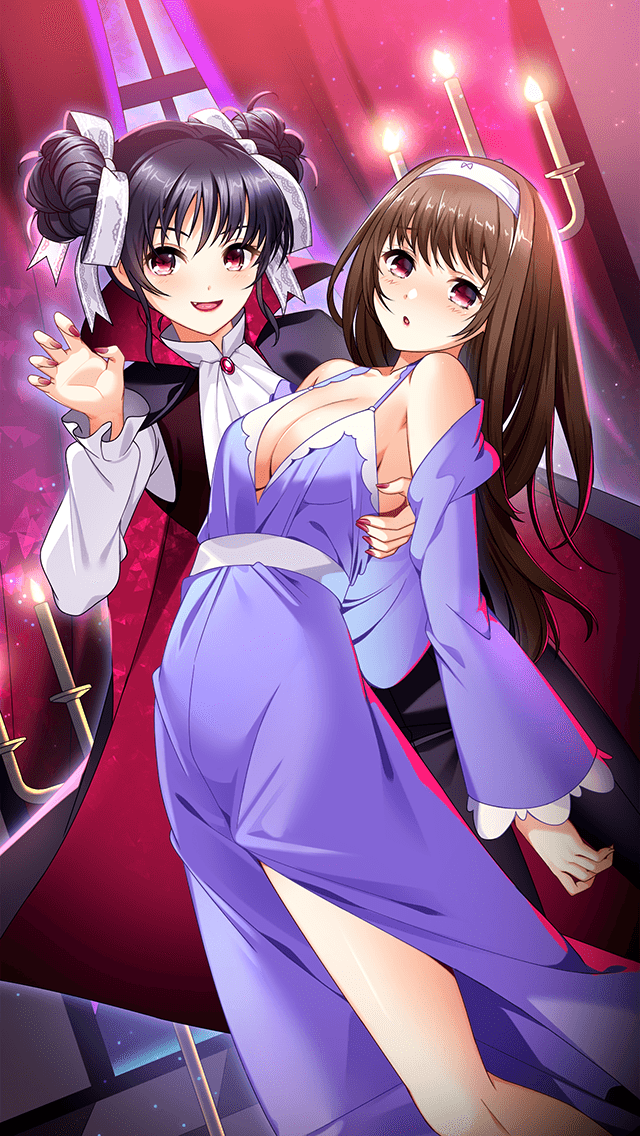 ヴァンパイアと美女のコスプレ姿の鳴沢唯と結城瑞穂。