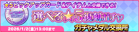 『選べる☆5』ガチャメダルを集めて任意のピックアップヒロインと交換できます。