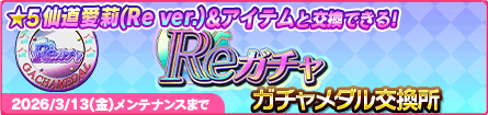『Reガチャ』ガチャメダルを集めてピックアップヒロインと交換できます。
