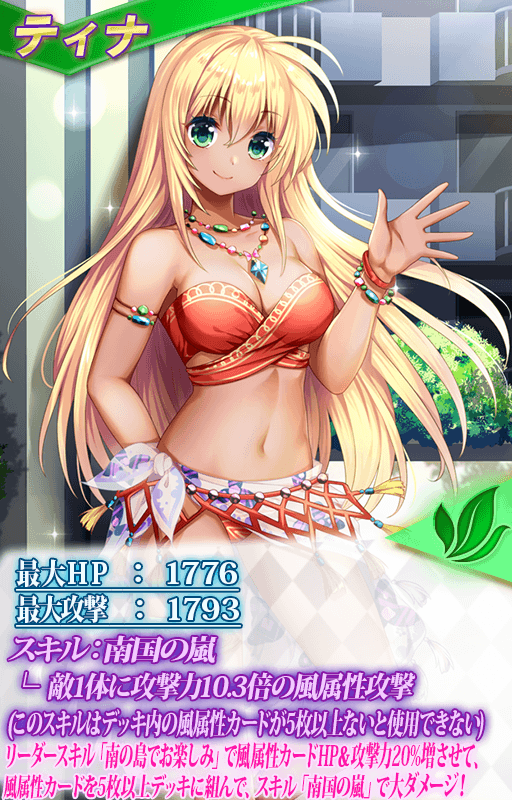風属性カードを5枚以上編成しているときのみ発動できるので、リーダースキル