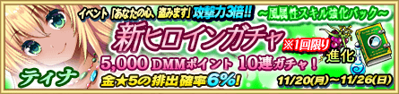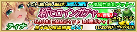 「ティナ」は11月30日(木)23:59まで経験値素材を使った際の成長速度が